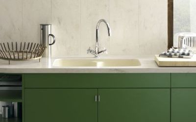 Corian® solid surface for a colourful kitchen, inspired by traditional Basque fabrics