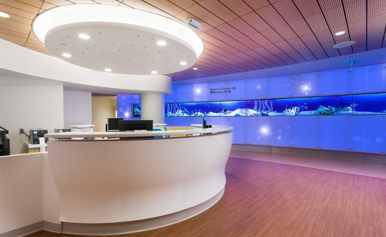 SBS architect Brian Peterka led the effort to incorporate a variety of life-affirming attributes and to convey a sense of light into the overall design. A critical element of the design was to promote wellness, comfort and distraction, features of key importance when dealing with the fears of young patients. Understanding that light in hospitals can affect mood, sleep and pain, and ultimately healing were driving considerations in developing a theme of light for the Institute’s overall design: the Journey of Light.