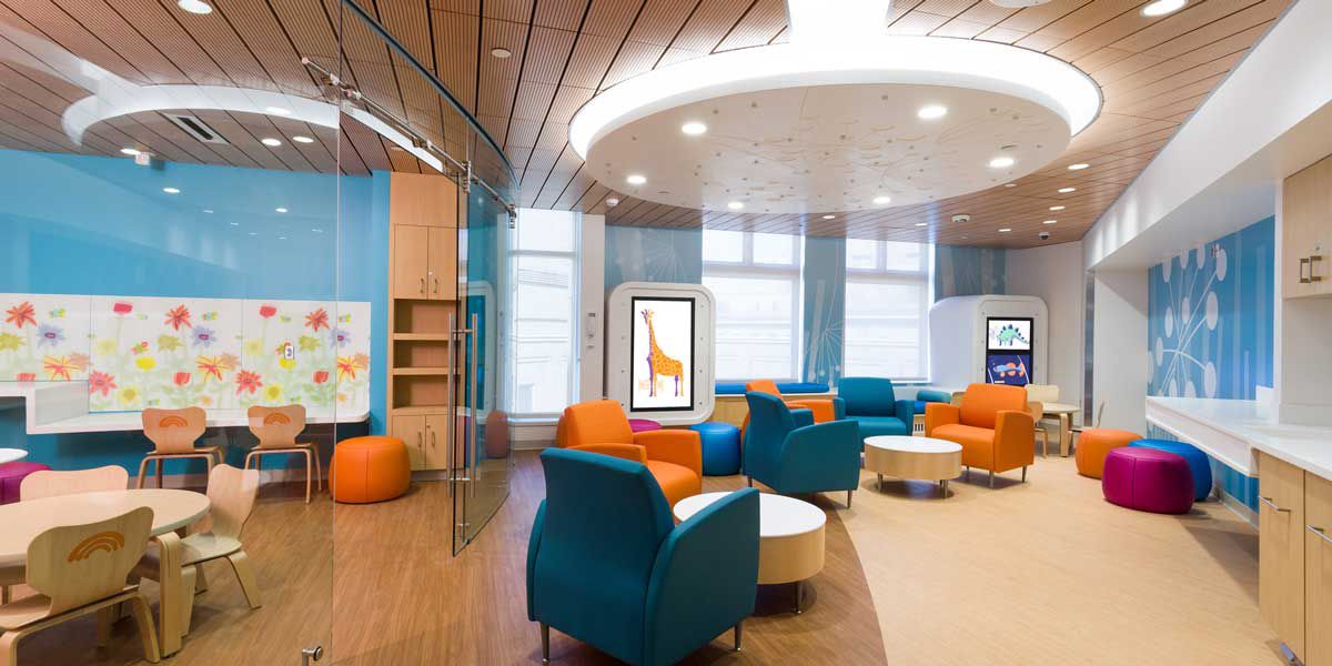 Angie’s Institute – through a unique partnership with the Livestrong Foundation and the National Cancer Institute – features a one of a kind dedicated outpatient treatment facility. Designed by the national architecture and interior design firm, Stanley Beaman & Sears (SBS), the newly renovated space on the 8th floor of the hospital is one of the first in the country to offer separate, age-appropriate outpatient areas, technologies and amenities for babies/children and adolescents/young adults.
