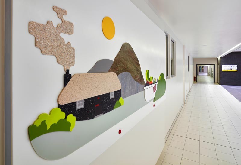 The team responsible for conceiving and creating the artwork included art consultants Ginkgo Projects, artist Rachel Mimiec, designers Graphical House and interior architects Haa design. “In a city there are signs, but sometimes you find your way around by recognising a particular church or statue,” says Chris Fremantle, project manager for Ginkgo Projects, “The challenge was to create these landmarks in a way that would not only be attractive, but also highly functional, while also being suitable for the sterile interiors of a hospital.”