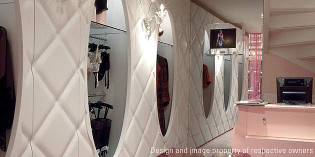 Indeed, the Chantal Thomass store stands as one more challenge successfully met by Corian® solid surface material, bringing warmth and sophistication to the space while ensuring long term strength and good looks.