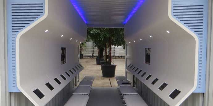 An initiative of the Floating City Apps foundation: the "CityApps", mobile multi-functional units adopting interior wall cladding and furnishing solutions made with Corian® high-tech surface; design by Waterstudio.NL; photos by Floating City Apps foundation; all rights reserved on design and photo.