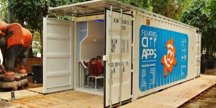 In the shanty towns of the Third World, there is a great need for providing education. The Floating CityApps foundation has developed a revolutionary concept for this: ‘Floating’ or mobile units which can be fixed at a chosen location, but that can also be easily moved about as desired.