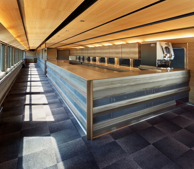 Passengers can freely access the cooking by MasterChef 's in the open Kitchen. "We wanted to arrange similar tones in the customer's eyes, so we adopted the same color of Corian® as the worktop & for the back of the counter”, says Mr. Meijo.