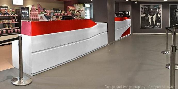 As highlighted by Yasser Kahlaoui, this interior 3D red shell in Corian® is unique in the world. The choice of red reflects enthusiasm and desire to dominate the scene, but at the same this color enhances human creativity and spreads energy. The IMAX® interiors are a kind of tasty red fruit to bite, or an underwater coral, something very attractive that you can’t avoid touching, an object of desire. Corian® has also been selected for the IMAX® cinema sales counters.