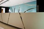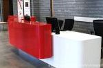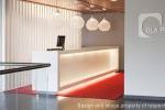 The furnishing installations created with Corian® Solid Surface include an outstanding kitchen island, a large meeting table, office desks, coffee tables, a cocktail bar as well as pillars and wall cladding. The white pristine color contrasts with wood and other materials, contributing to design a comfortable, warm lounge area that lives up with the user's expectations.