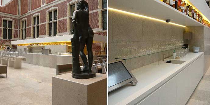 Project manager Edwin van Meer, from Gielissen Eindhoven, is very proud of the result. “Corian®can be worked in 3D and also in every form imaginable. But if you really want take advantage of all the possibilities, you need a specialized knowledge of the material. We have been able to use all our experience in this project for the Rijksmuseum. For example, we created round shapes and used a special sealing method that allows Corian® to seamlessly blend with the natural stone. This gives a fantastic result in all the different rooms and spaces.”