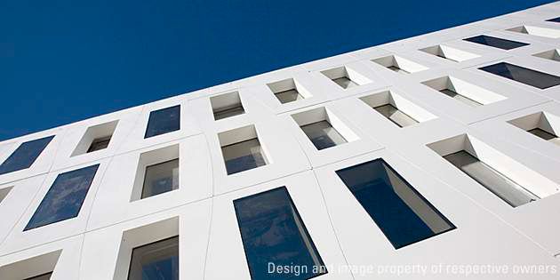 All tests and technical validations were undertaken by Qualiconsult, a French regulatory organisation, as part of an “Enquête Technique Nouvelle” (New technical Enquiry). This was performed in close cooperation with Anne-Line Citerne, project leader at DuPont, who explained: “The innovative fixing system that was developed for this project was validated as an R+4 level façade-cladding project in a Class II wind area during the investigation by Qualiconsult. This system uses Façalu aluminium frameworks from the Etanco company and incorporates invisible fixings that attach the panels of Corian® onto a clip system on the framework in secondary, horizontal profiles. The framework is about 10 cm thick and can also, if required, receive an exterior insulation material, as well as a rain-proof film, between each rail. This innovative system provides outstanding impact strength together with excellent resistance to positive and negative loads.”
