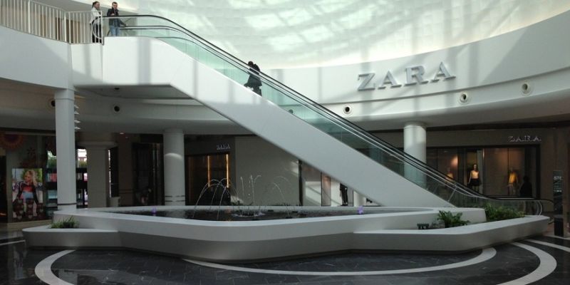 Recently renovated, Place de la Fontaine, the central point of the shopping centre in Rennes, France is in a large dip 15 metres long and 11 metres wide. Constructed of 75 sheets of Corian® (230 m² of material) it is completely curved with no single axis point.