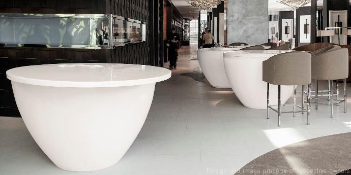 Interiors of the Sofitel Casablanca Tour Blanche: the champagne bars with removable cover, entirely fabricated in Corian® by Deborel Maroc: project by Marc Hertrich and Nicolas Adnet, photos courtesy of Deborel Maroc, all rights reserved.
