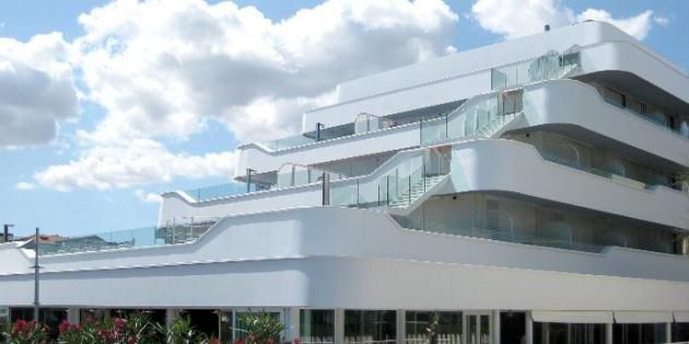 In Riccione, Italy, a historic symbol of the social life of the Romagnola Riviera has been completely transformed by architect Antonio Scarponi from the Zurich-based studio Conceptual Devices. This is both a functional revolution, with the conversion of the original ‘Trampolines’ landmark into a hotel restaurant, and a technical-aesthetic revolution, with an architectural construction inspired by cruise ships and featuring an articulated facade made with Corian® high-tech surface. It is the largest facade created in Italy using this globally renowned, cutting-edge material for architecture and design, and has been fabricated by the Udine based company, Altha®.